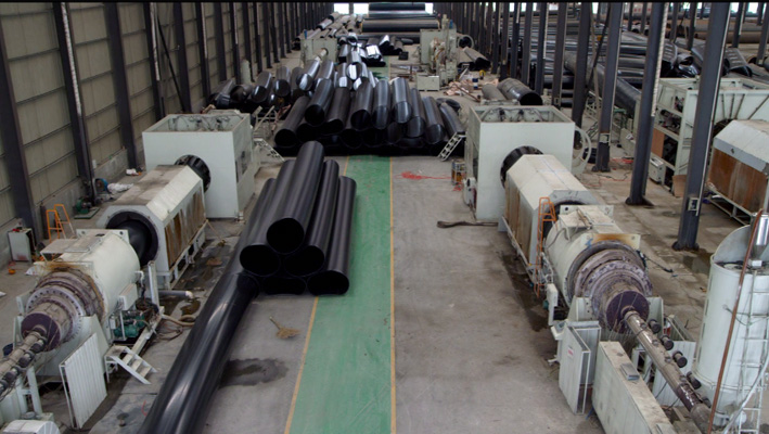 拥有聚乙烯管材生产线12条,采用先进的螺旋模具挤出、真空定径、喷淋冷却、自动切割等先进生产工艺,年生产DN90-DN2000型聚乙烯外套管3万吨